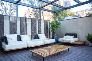 園區(qū)內(nèi)高達(dá)50%綠化率,1.1公里活水水系景觀貫穿園區(qū),水系配有跌水瀑布、觀景亭、休閑木平臺(tái),水系兩側(cè)配有喬灌草三層搭配,高低錯(cuò)落、層次立體分明。