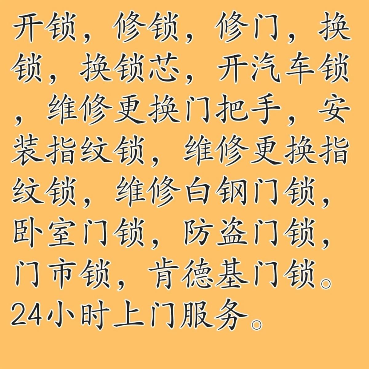 開鎖,修鎖,修門,換鎖,換鎖芯,開汽車鎖,維修更換門把手,安指紋鎖,安裝指紋鎖,指紋鎖安裝,維修白鋼門鎖,臥室門鎖,防盜門鎖,門市鎖,肯德基門鎖。24小時(shí)上門服務(wù),電話13766069151